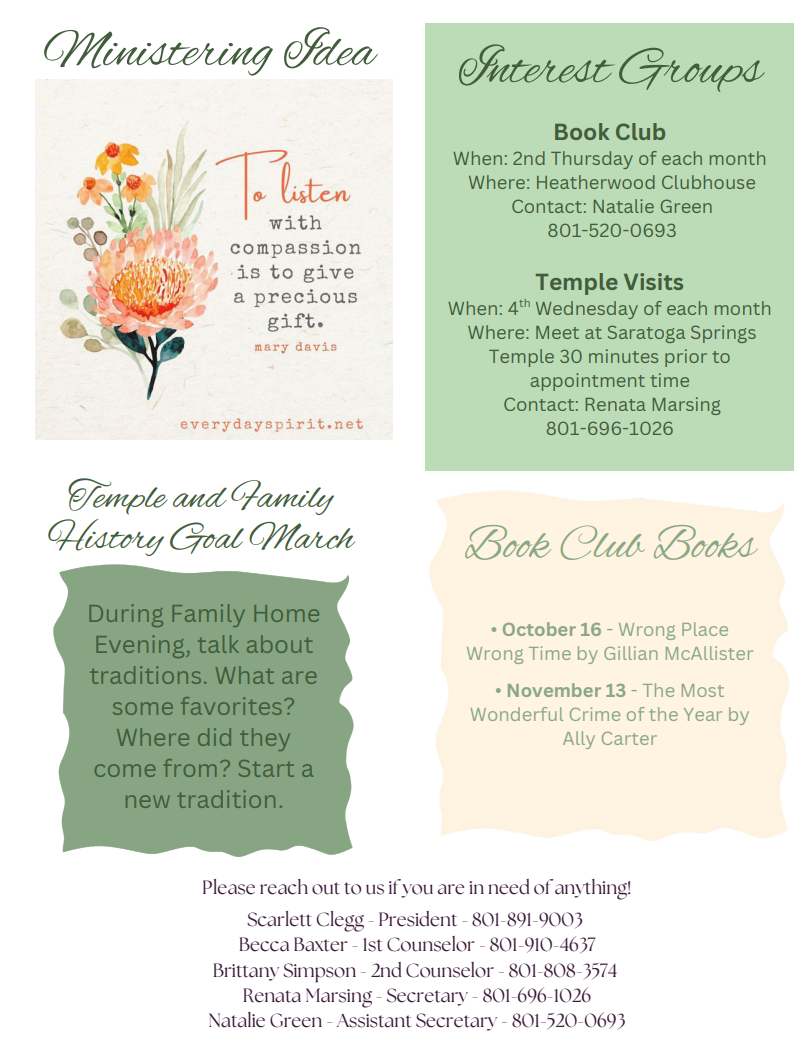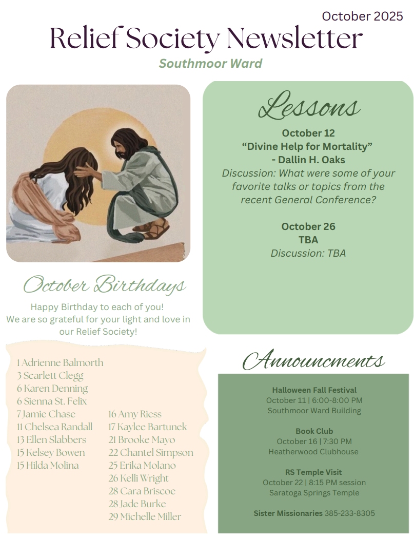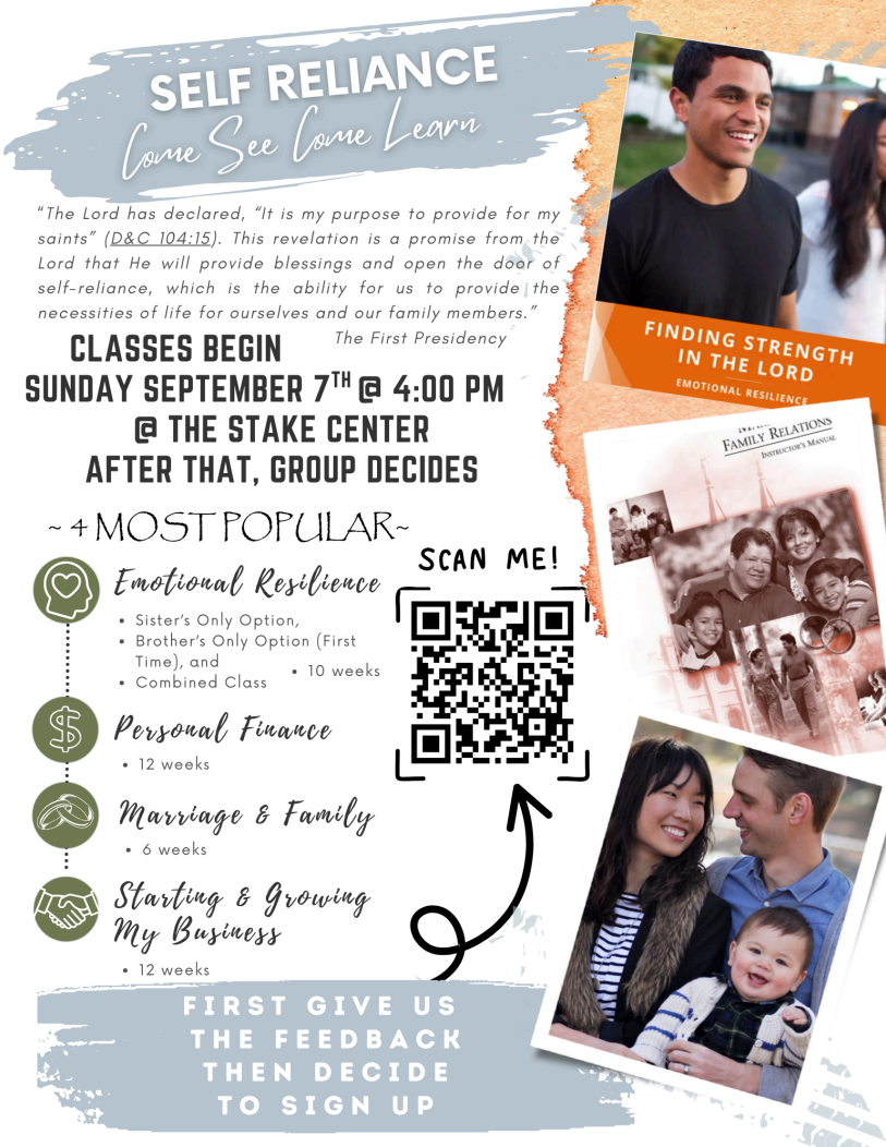Relief Society Relief Society Newsletter Women's Volleyball Gathering Place Self Reliance Classes Begin Sept 7 @ 4:00PM